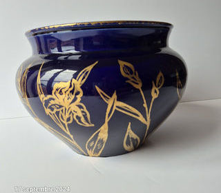 Grand cache pot ancien, Bleu de Sèvres émaillé et dorures Magnifique cache pot ancien d'un beau bleu nuit de Sévres avec décor