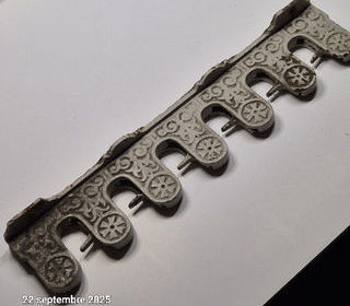 Support ou râtelier de canne de billard en fonte Travail entre 1900-1920. Il permet de maintenir 6 cannes dans un râtelier. Le système ingénieux, permet
