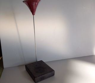 Bougeoir décoratif et artisanal en terre et pierre Réalisé par une artiste de Touraine, année 2005 La bougie se met sur la pierre, Hauteur