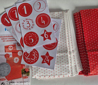 Kit calendrier de l'avent, 24 sachets et 24 chiffres Set de calendrier de l'Avent " Pois rouge et blanc " contenant tous les matériaux nécessaires pour fabri