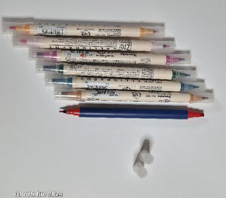 Lot de 7 feutres biseautés pour la calligraphie et 2 pointes différentes ZIG 6 feutres ZIG calligraphy et 1 feutre Staedtler les couleurs sont pure roug