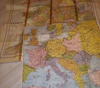 Lot de 2 cartes géographiques anciennes La France et l' Europe Les dimensions de L'Europe font 80 x 60 cm ( il manque un bout
