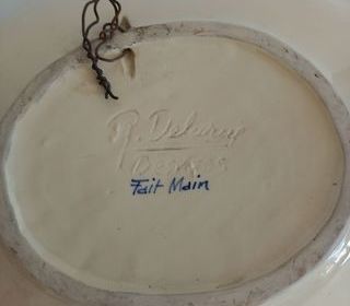 Plat corbeille à fruits en faïence par " Delarue " Desvres Corbeille ou plat ressemblant à une palette de peintres Un travail fait à la