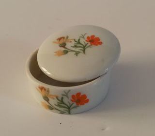 Petite boite en porcelaine blanche, peinture artisanale, Peut servie à mettre la première dent, les cachets, pilules, .... Les dessins sont réalisé