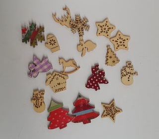 Lot de 16 petits sujets de noel en bois brut ou décoré pour agrémenter votre table, sapin, décoration ... dim
