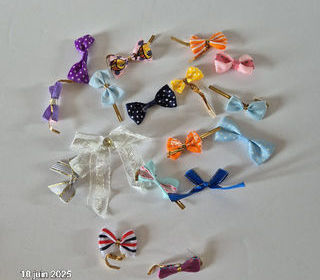 Lot de 16 n?uds différents pour décorations en tissu avec attaches Ils font de 3 à 5 cm de large, Il est possible de les mettre sur des pinces à li