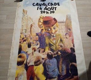 Affiche de la cavalcade d'été de Boulogne sur mer 1989 Affiche du 15 aout 1989 avec son beffroi et les grosses têtes Les dimensions sont de 1.