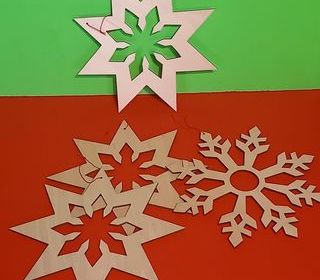 Lot de 3 étoiles et 1 flocon en bois pour décorer votre sapin, ou autre