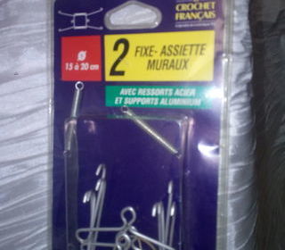 2 fixe- assiette à ressort Lot de 2 fixe- assiette à ressorts LE CROCHET FRANÇAIS Ce fixe-assiette vous permet d'accrocher aisément au mur vos assiettes de 15 à 20 cm de diam