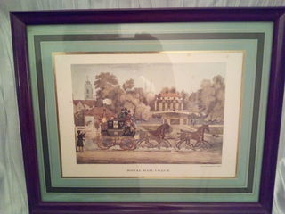 Estampe "Royal mail coach" de James Pollard le peintre des coachs Dessiné et gravé par James Pollard peintre anglais du milieu du 19ème siècle âge d'or des coaches en Angle