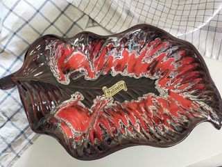 Très grand plat en Forme de Feuille de banane Vallauris France ? Objet de collection Centre de Table ou coupe de fruit en Céramique Coloré en Forme de Feuille de banane - Vallau