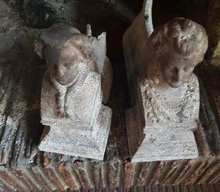 Paire de chenets anciens dont l'un est plus petit à l'arrière car cassé mais beaux sur le devant. A nettoyer Longueur : le grand : 30 cm - le cassé : 19 cm Largeur : 9,5 cm au p