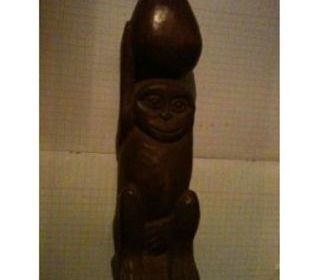 *** Statuette Bois Sculpture Art Naif Centrafrique Bangui Singe Avec Noix De Coco Je l'ai rapportée de Bangui en 1989, fabriquée par un artisan artiste. Statue carrée environ 35 c