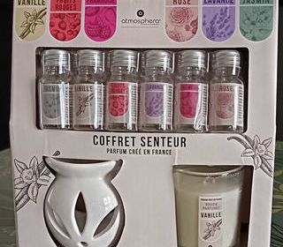 Diffuseur de senteur, 6 parfums différents, avec en plus une bougie parfumée vanille dans son pot de verre... peux expédier par mondial Relay