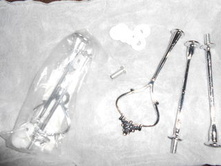tiges ciselées argentées, à visser sur les petits plats ou assiettes de présentation à mignardise, macarons, cocktail etc état neuf, doublon en cadeau.