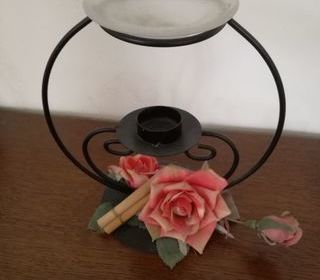 Bonjour, vend Brûleur/Diffuseur d'Huiles Essentielles en fer forgé.. Fonctionne avec bougie brûle parfum (non fournie) Hauteur: 22 cm Largeur; 21 cm
