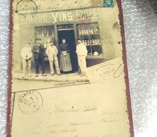 plaque de publicité sur une ancienne épicerie en gros du village (( J. SOULIÉ )) avec les renseignements sur la plaque qui est en très bonne état , les dimensions sont : Hauteur