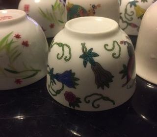 Six tasses et trois motifs décoratifs
