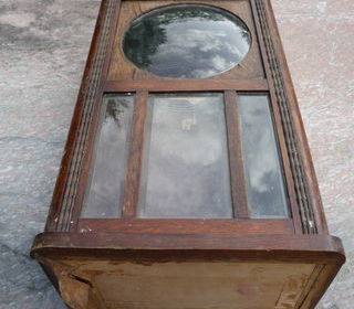 Mignon, petit carafon , en étain garanti, étain repoussé formant une grappe de raisin en relief sur fond de tonneau.Epoque Art déco. Dimensions : hauteur : 9 cm , Diamètre : 7 cm.