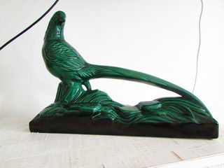 Statuette en céramique verte sur socle noir , signé HL. Dimensions : 48,5 x 12,5 cm sur 34 cm de haut. Dans le goût de saint Clément ou Lemanceau Expédition MR : 10 euros