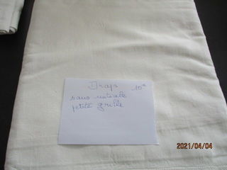 Draps ancien sans initiale, petite grille fait main, dimensions 140/300, peut servir comme nappe , ou autres usages etc... (une de mes amis l'a teint pour faire une nappe que j'ai