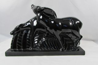 Sculpture Saint Clément , en céramique noire , représentant deux antilopes , très rare de part sa couleur. Bel état de l'ensemble à part quelques manques aux angles de la terrasse