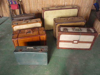 Lot de valises bois et cuir 86cm x54cm x 18cm à 50cm x 31cm x 15cm 20€ à 45€ pièce