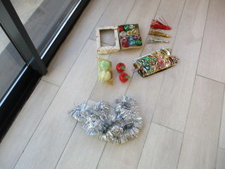 Guirlandes de noël, argentées, dorées, rouge, pommes rouges, boites de guirlandes en boules, boules verte et blanche