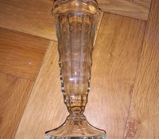 Service à dessert en verre composé d'un plat de forme allongée idéal pour servir un cake (39x16cm) et de 6 assiettes avec un liseré doré aux motifs en relief (fleurs) (diamètre 16c