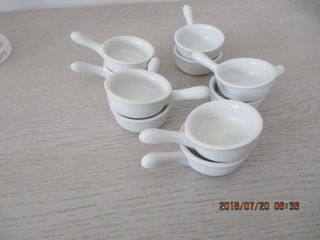 Dix petites casseroles en faïence blanche, à servir pour un apéritif dinatoire, en entrée, des sauces, ou autres utilisations