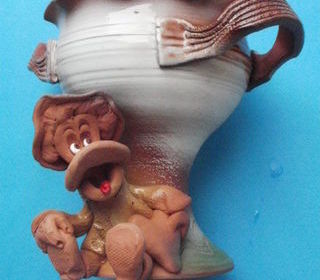 Poterie / POT à anses / CACHE-POT/ VIDE POCHE / BOCAL / VASE en terre cuite, avec personnage,imitation de Donald Création artisanale et originale du Tarn et Garonne (vers Saint