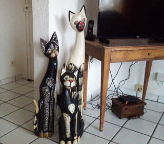 - 1 chat blanc hauteur 97 cm - 1 chat noir hauteur 79 cm - 1 chat noir hauteur 60 cm