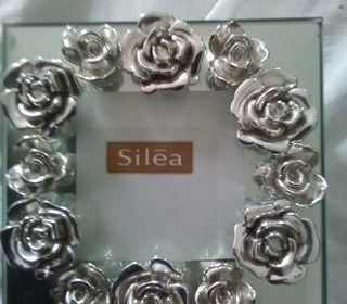 Joli coffret miroir 12 x 12 intérieur velours noir dessus roses possibilité d'insérer petite photo