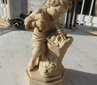 Statuette en résine d'albâtre ,à ma connaissance ,portant sur le socle la signature G.Ruggeri.... representant un adolescent qui taille la pierre . haut : 18 cm envoi mondial r