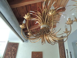 Superbe lustre vintage en métal doré huit branches (gerbe de blé) hauteu r60 cm à retirer à Pernes