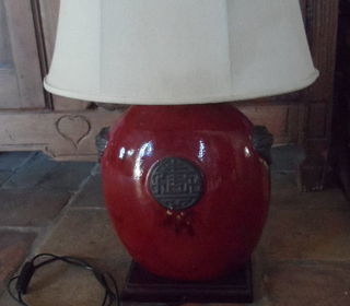 lampe abat jour beige pied bordeaux hauteur 65 cm