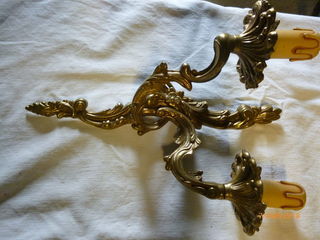 4 Appliques murales anciennes en bronze, électrifiées, style Régence, très belle fabrication artisanale, 2 double 50€ et 2 simple éclairage 40€.+divers accessoires à petits prix.