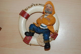 Sujet en plâtre décoré style bord de mer avec attache au dos pour l'accrocher diamètre 13 cm épaisseur 3 cm