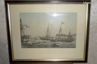 Louis Lebreton Peintre lithographe de marine L'Aigle, yatch impérial construit à Cherbourg. Lithographie imprmée en couleurs et rehaussée d'aquarelle, à l'époque. Planche de la