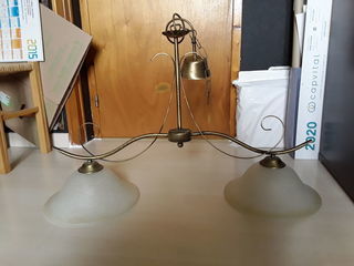 Luminaire très joli au dessus d'une table ou d'un bar Une partie en laiton Deux abat jour en verre