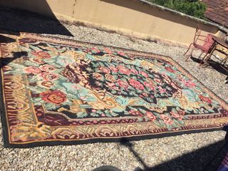 Tapis kilim 3.64x2.32 marqué Turquie. Pouvant servir tapisserie murale. Ancien acheté vers 1960. Motif fleurs. Excellent etat