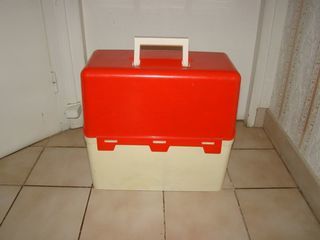 Valisette classeur / trieur vintage Valise en plastique dur à 6 compartiments de rangement, avec poignée de transport Couleur : orange et crème pour ranger des documents,