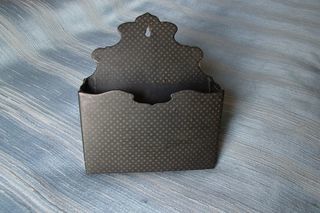 Ancien porte-courrier mural Epoque Napoléon III - XIXème Porte-lettres en carton bouilli / papier mâché avec découpe en forme de volutes couleur : noir avec décor d'étoiles do