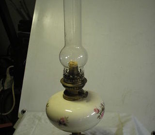 Jolie lampe a alcool"vintage",parfait état,hauteur avec verre 50cm-diamètre du récervoir en faience 15cm,livraison GRATUITE possible a Paris.