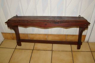 Ancienne étagère murale / porte - casseroles vintage années 1970 Etagère en chêne comportant à 4 crochets en laiton permettant de suspendre 4 casseroles ou autre 2 crochets p