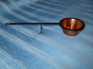 Casserole à nourrice en cuivre - Lecellier Villedieu - vintage Casserole à nourrice en cuivre martelé avec manche en fer forgé Estampille L. Lecellier Villedieu Longueur to