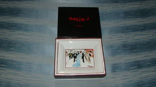 Cendrier / Vide-poche en porcelaine " Maxim's de Paris " vintage avec sa boîte d'origine décor " Belle Epoque " : illustration pour le menu de chez Maxim's d'après la lithographi