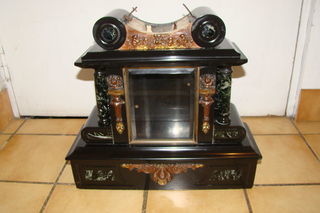 Ancien caisson de pendule en marbre - Epoque Napoléon III (circa 1860) Caisson de pendule de notaire en marbre 2 colonnes en marbre de chaque côté, décor de flambeaux et de p