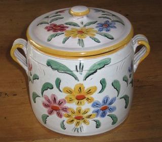 Ancien cache-pot / jardinière en faïence - Epoque 1900 Cache-pot avec anses à décor de fleurs couleur : bleu cobalt Dimensions : Hauteur : 14 cm Diamètre de l'ouvertur