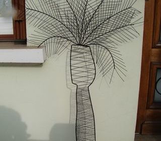 Palmier mural métallique (Haut. 1,30 m) Palmier mural avec une attache permettant de le fixer au mur. couleur : noir Hauteur : 1,30 m pour décoration de mariage, véranda ou